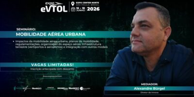 Estão abertas as inscrições antecipadas com desconto no Seminário Mobilidade Aérea Urbana, que será realizado no Expo eVTOL 2026, que acontece em paralelo ao MundoGEO Connect, DroneShow e SpaceBR Show, de 16 a 18 de junho no Expo Center Norte – Pavilhão Azul, em São Paulo (SP).